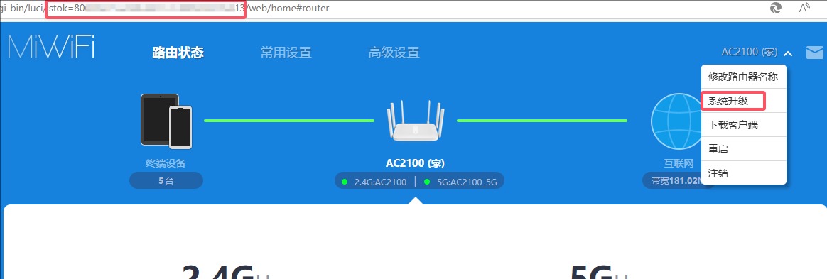 复制地址栏中的 stok(下图红色框框中的内容,每次登陆不一样)